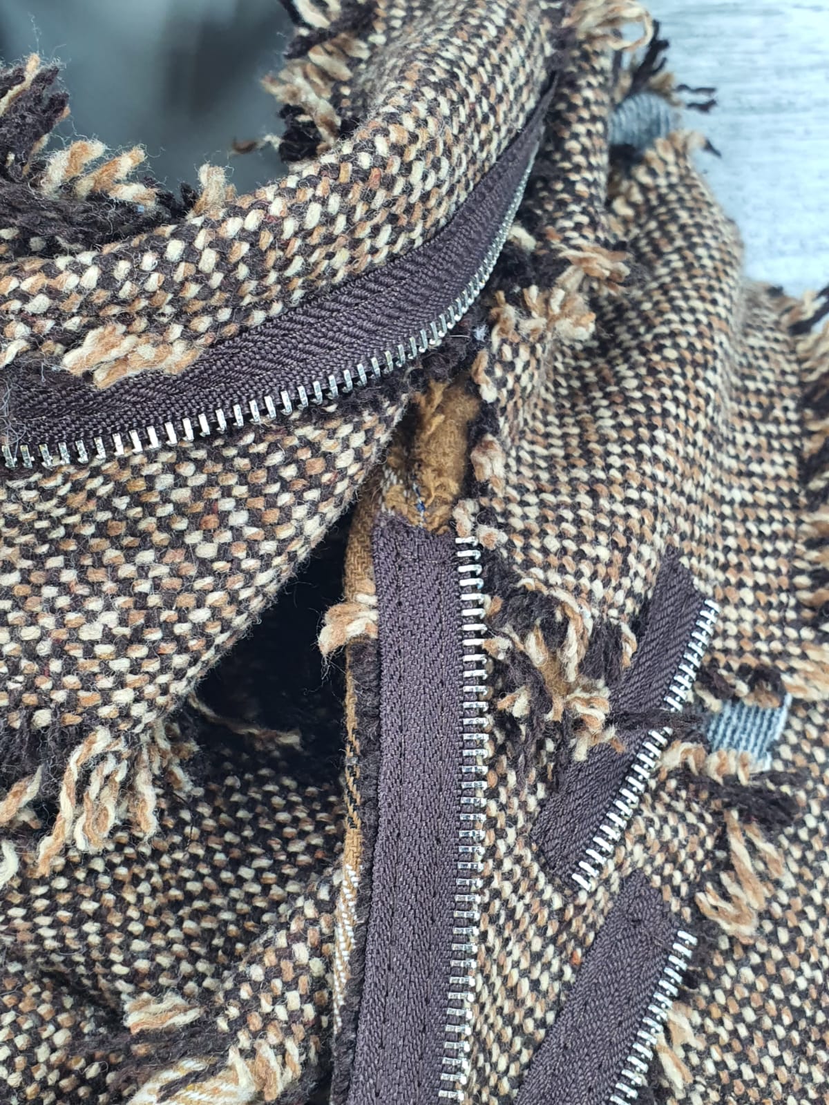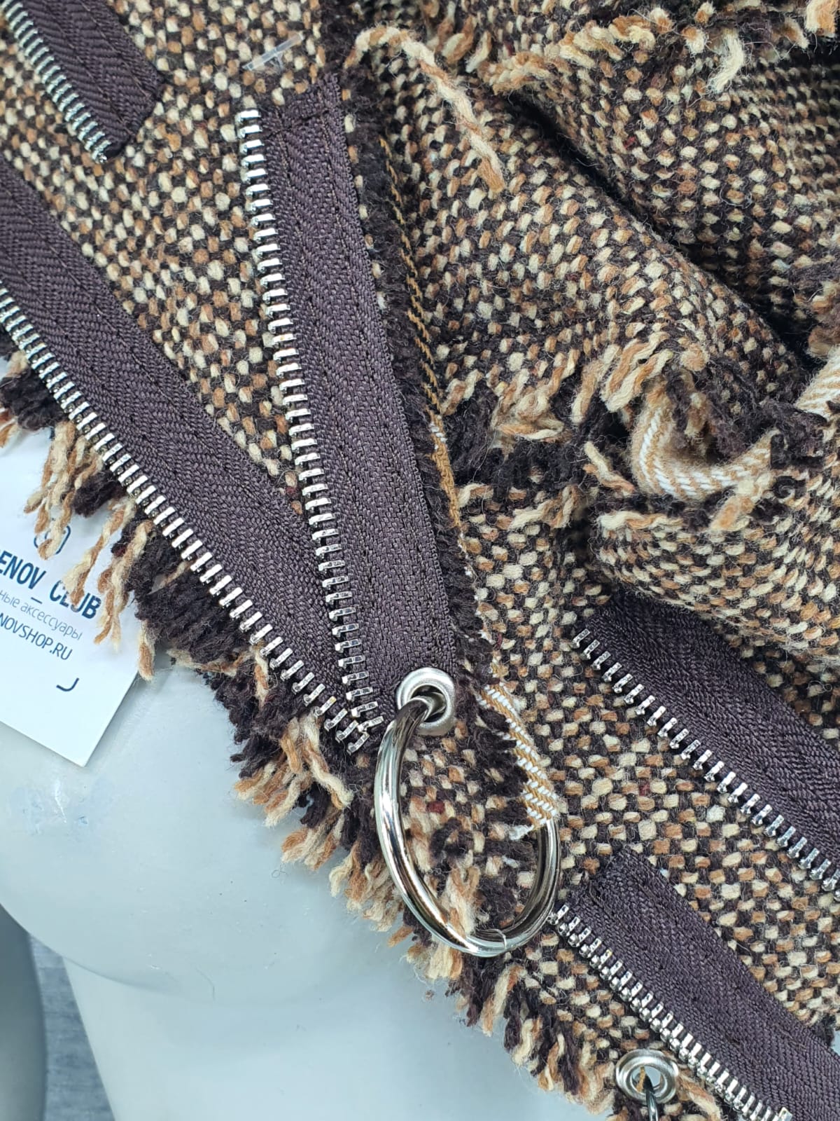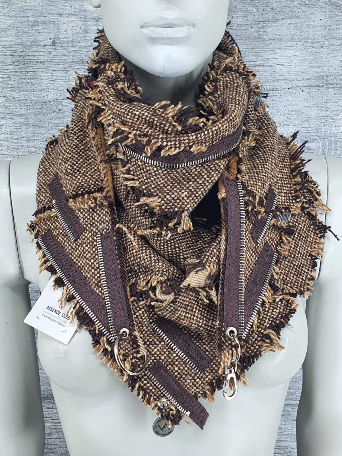 Шарф из твидовой ткани на основе в клетку, декорирован молниями. Просто и со вкусом!