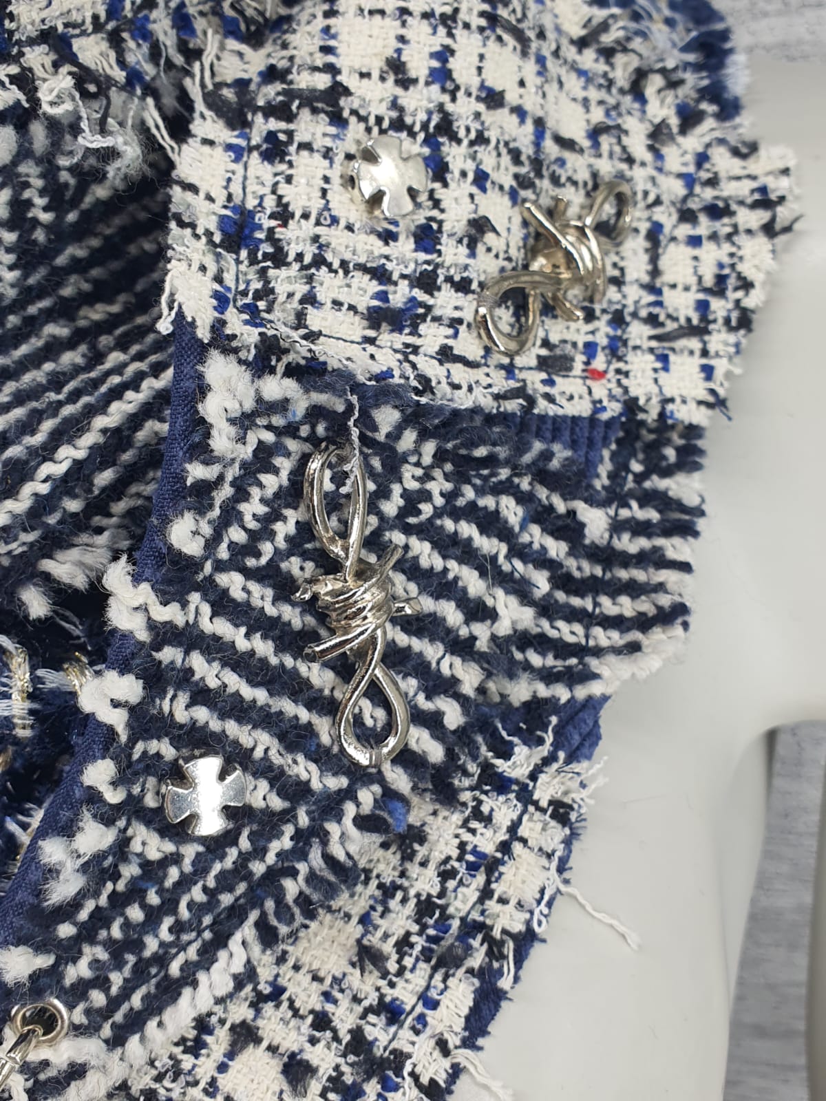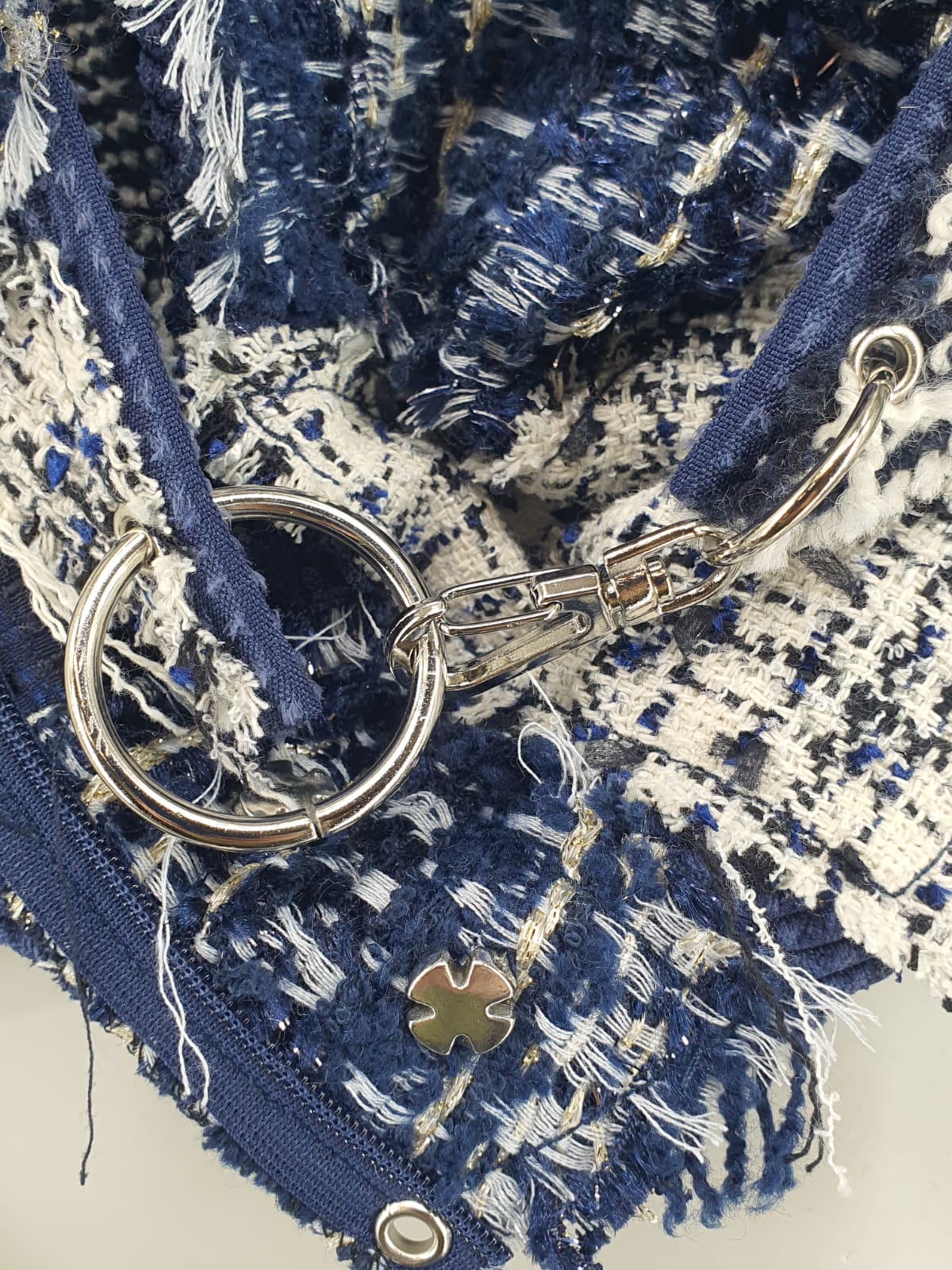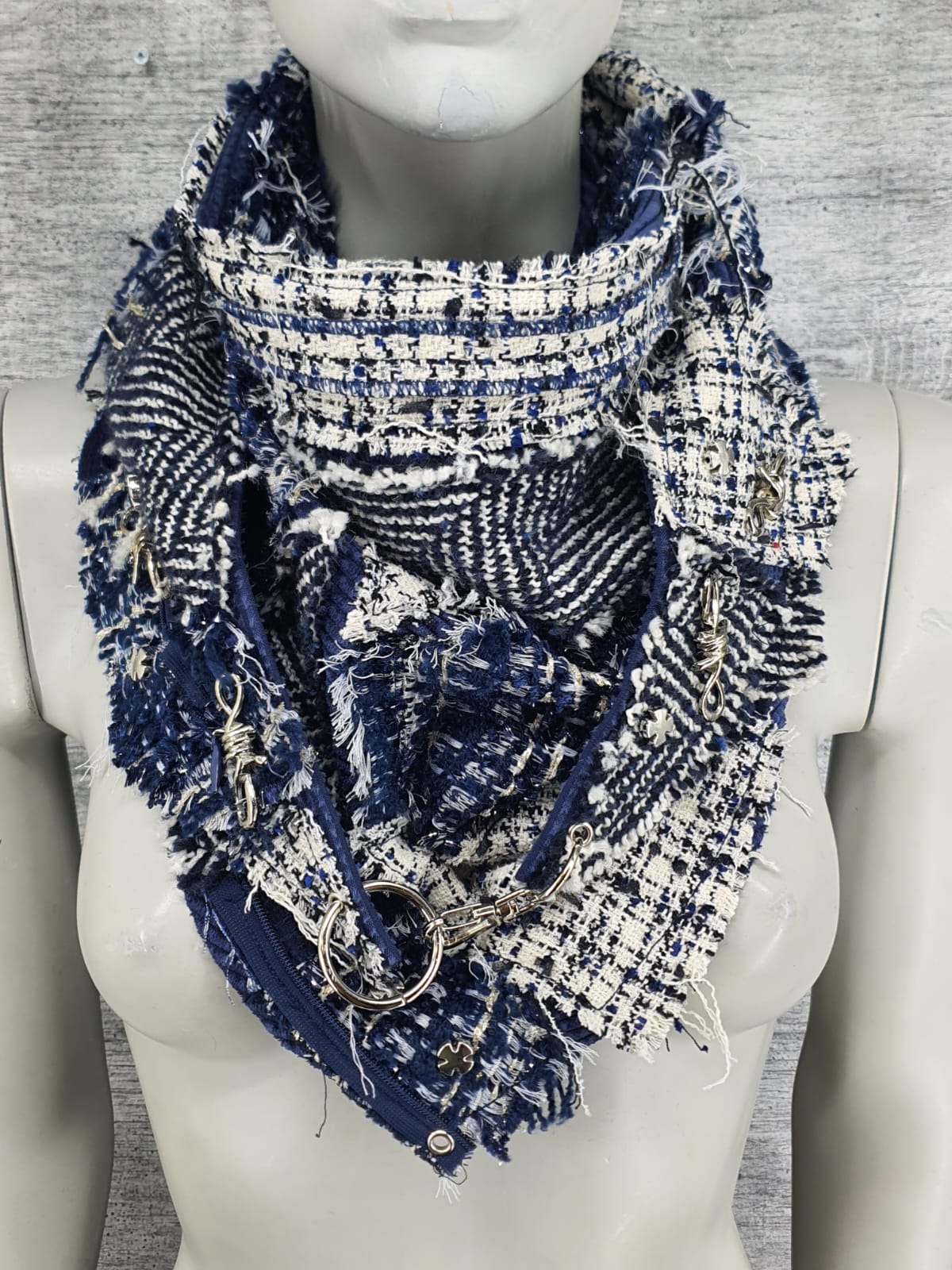 Шарф из жакетов в синих оттенках с добавлением люрекса на синей основе из микровельвета, декорирован металлическими элементами.