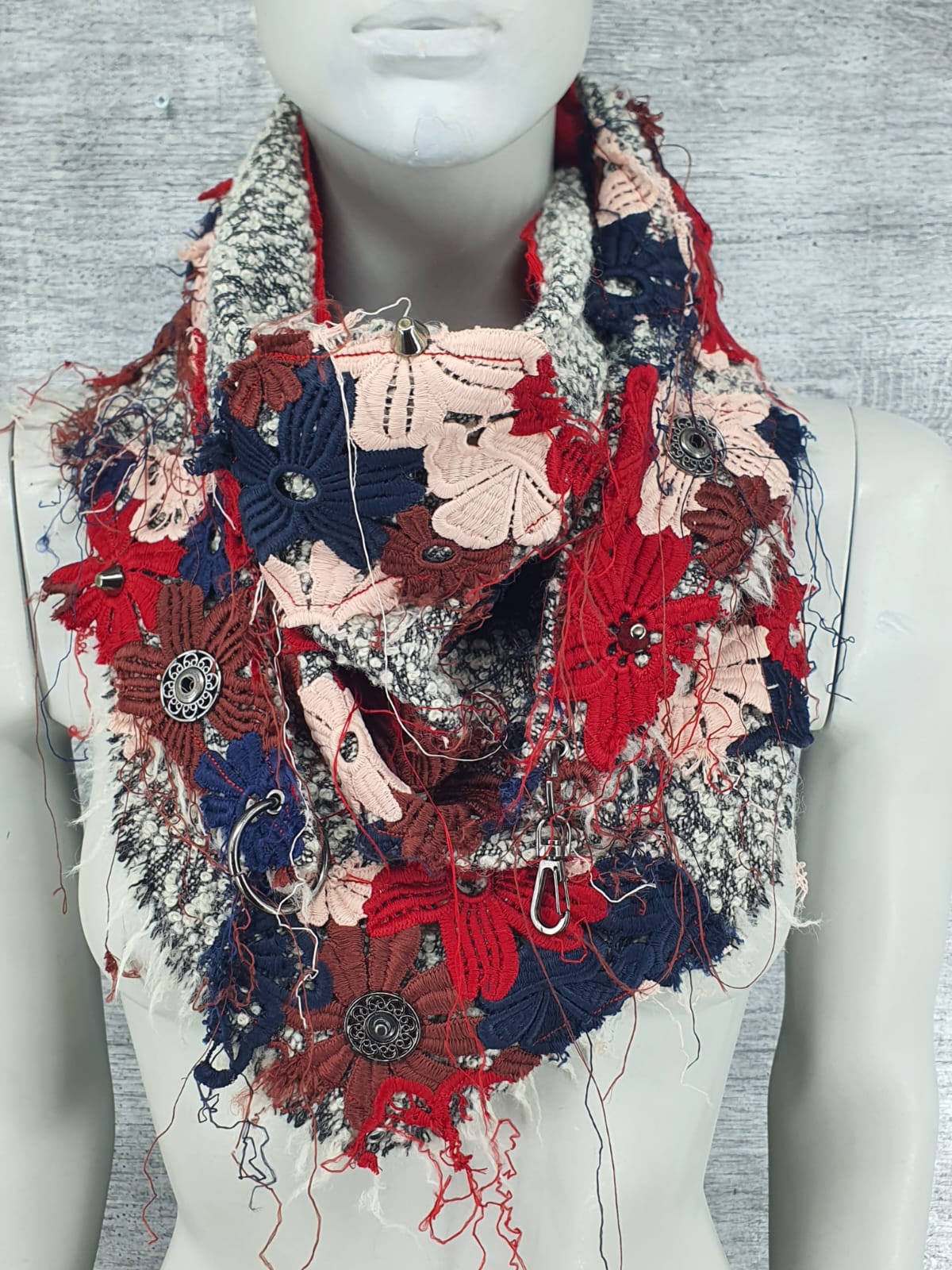 Каждый шарф — это около двух дней работы от идеи до завершающего этапа. Подборка тканей, вещей, оформление и декорирование делают наш шарф произведением искусства.